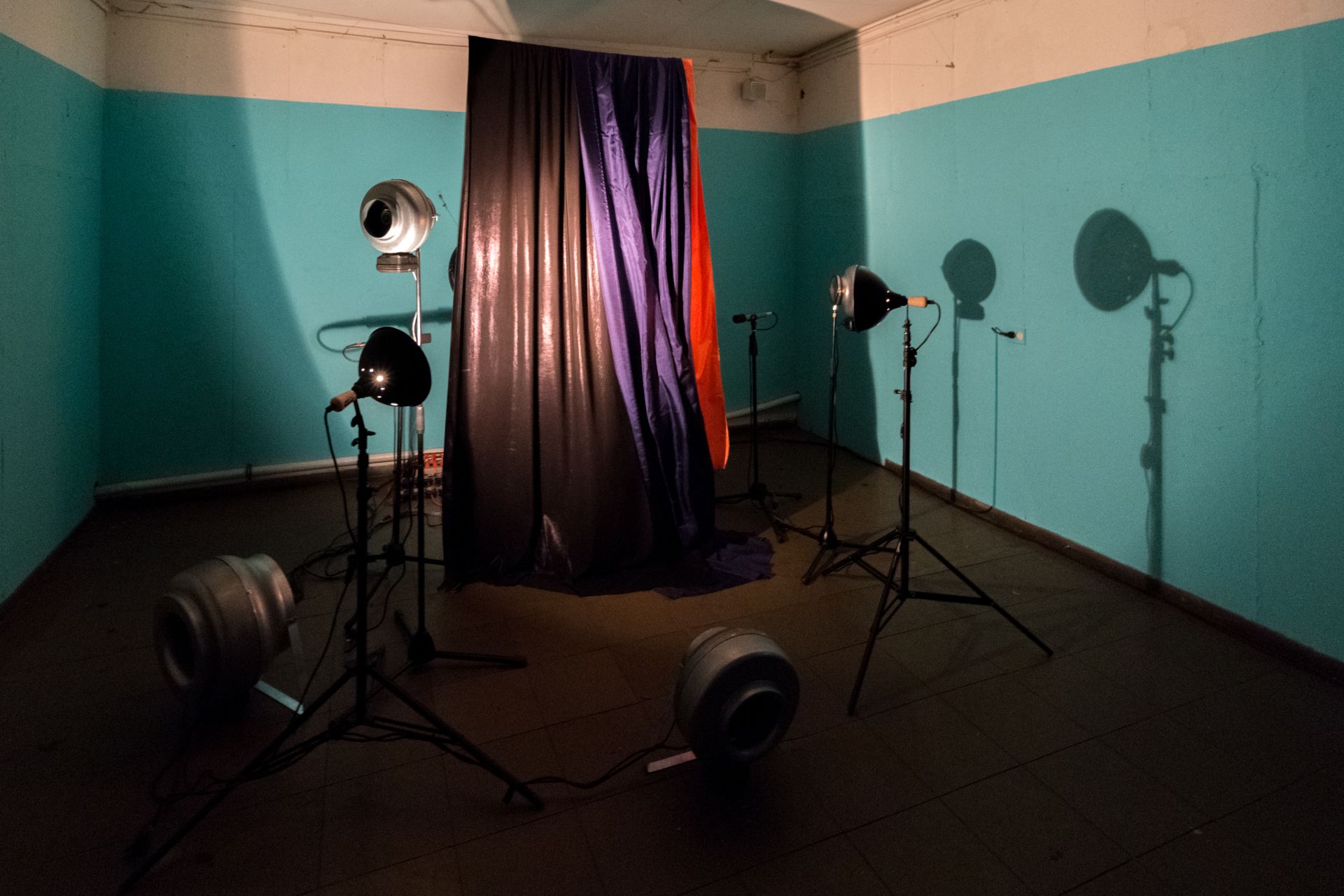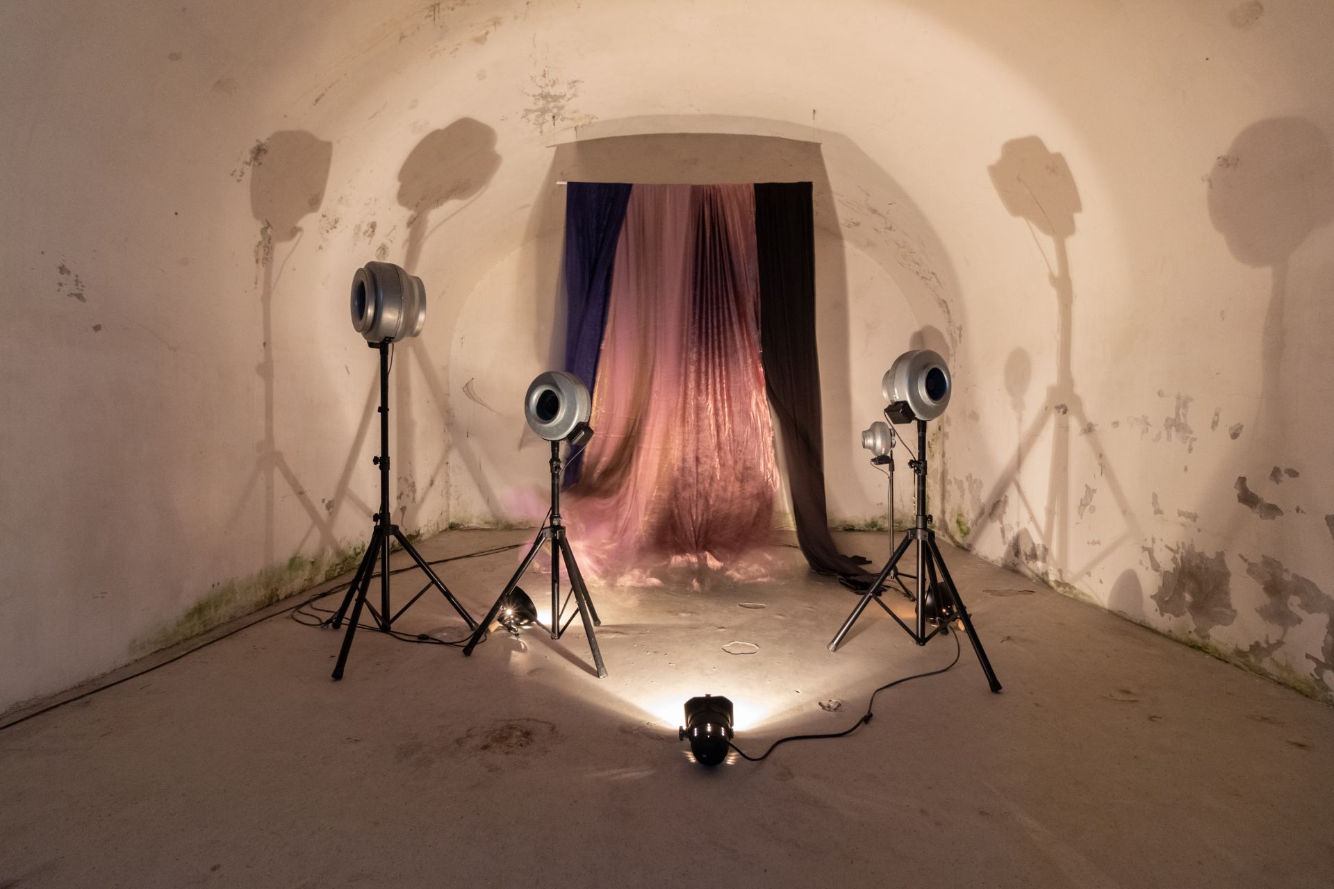 The project represents a carefully produced stage drama whose cast of characters is a casually thrown draping. Its “choreography” is achieved by work of the ventilators of various power levels and the theater lighting. The presented show is meant to evoke an uneasy feeling.