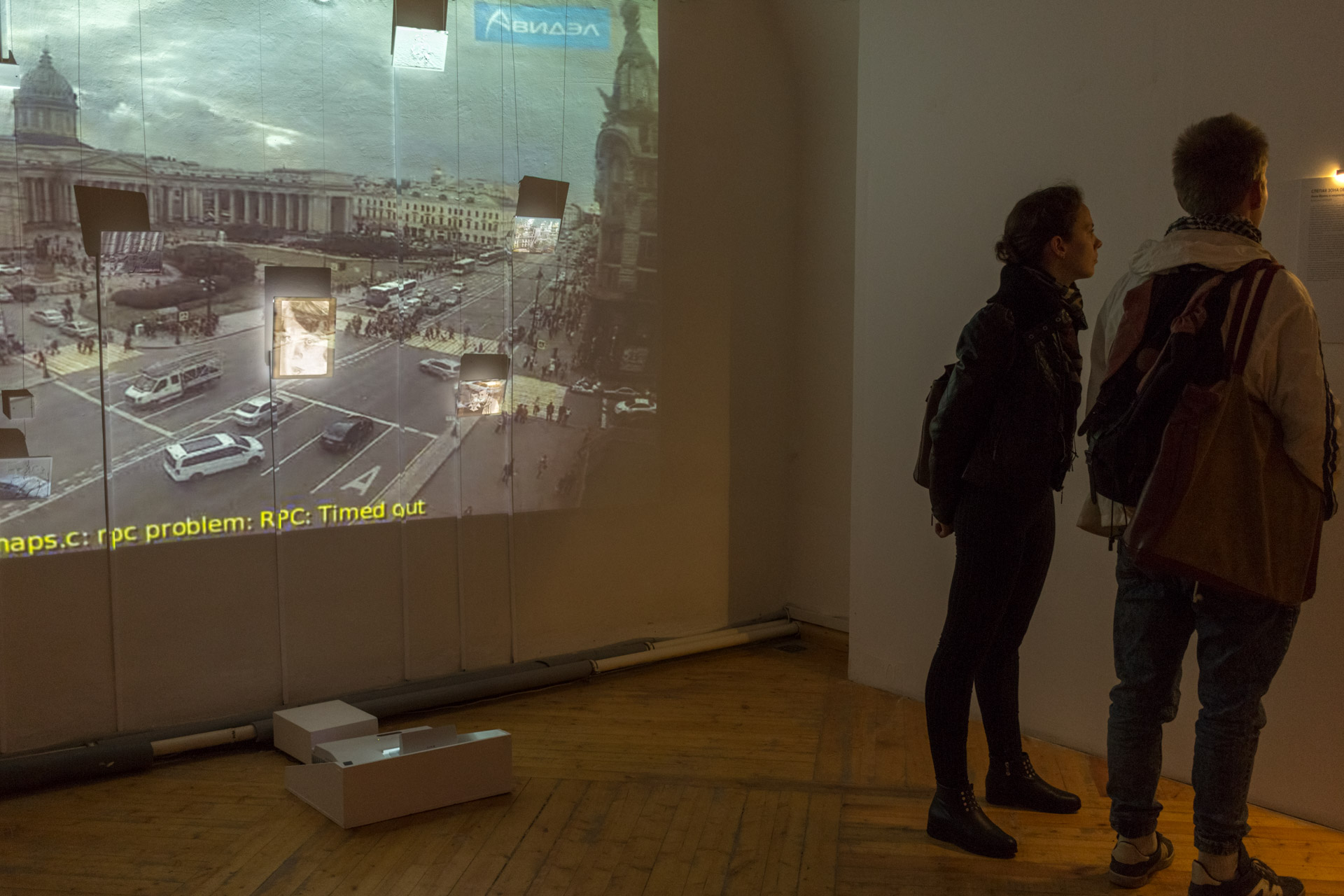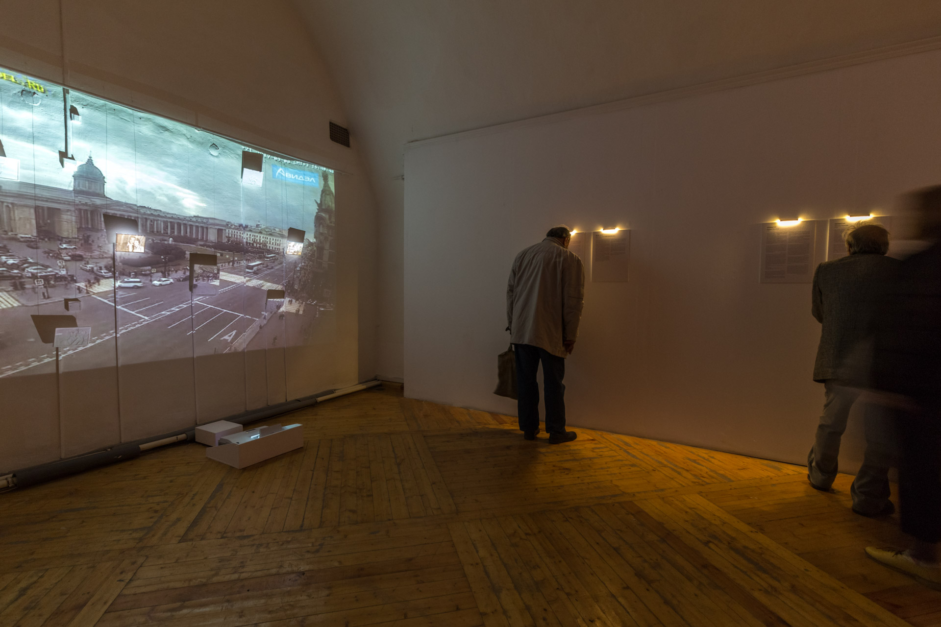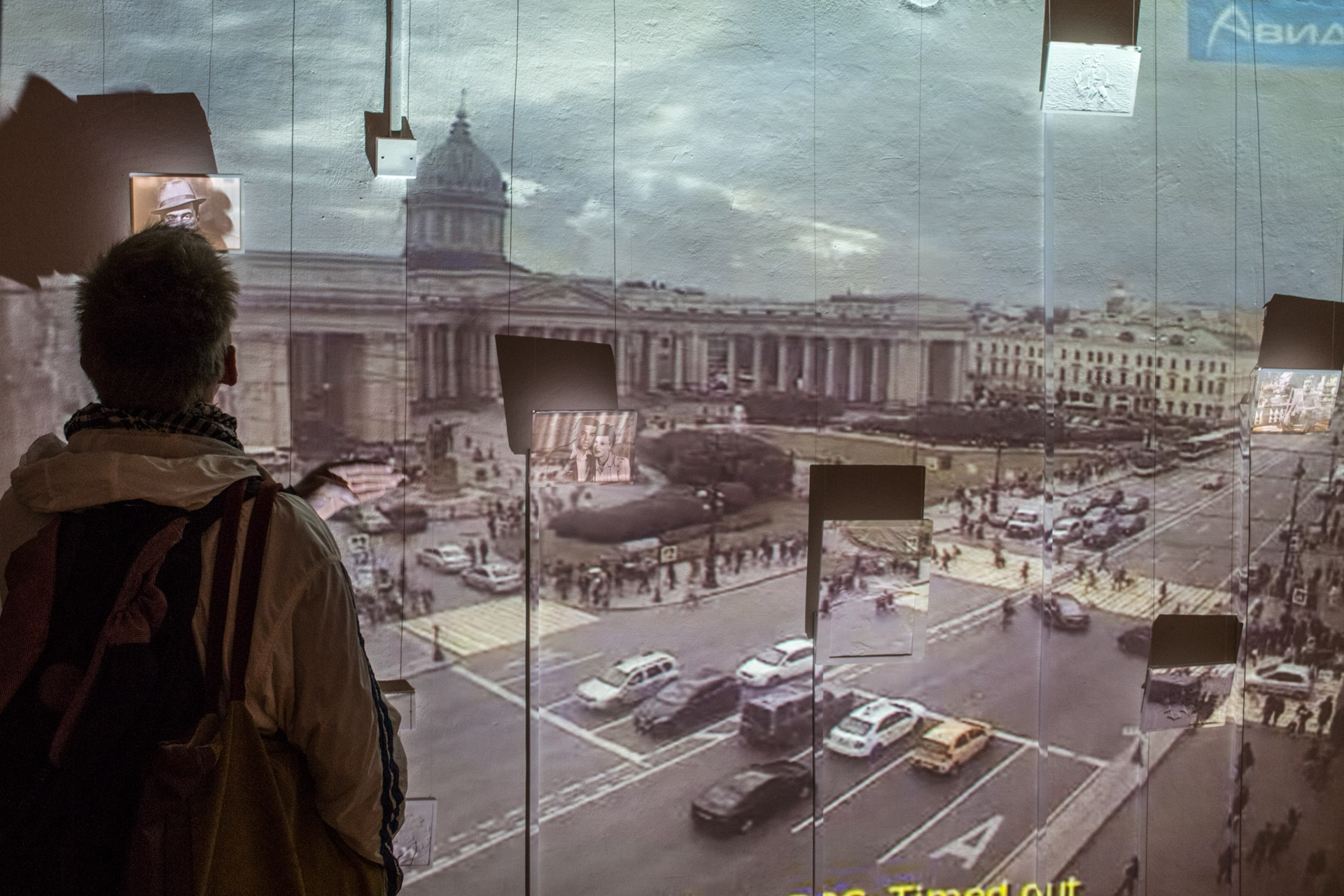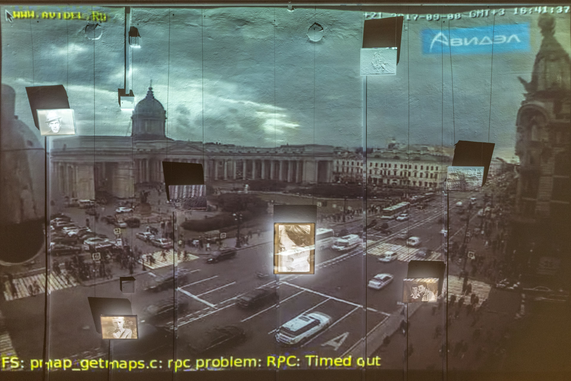 “Blind spot” is the name for the section of the road that a driver cannot see. In the installation of the same time, a direct broadcast from web cameras on Nevsky is combined with photographs from a family album. We look at the present-day city in real time, but for us, the understanding of what was experienced by over a million people who died and as many who were evacuated remains invisible. The only “threads of memory” are their words, written in their diaries, rarely remembered stories and a few photographs.