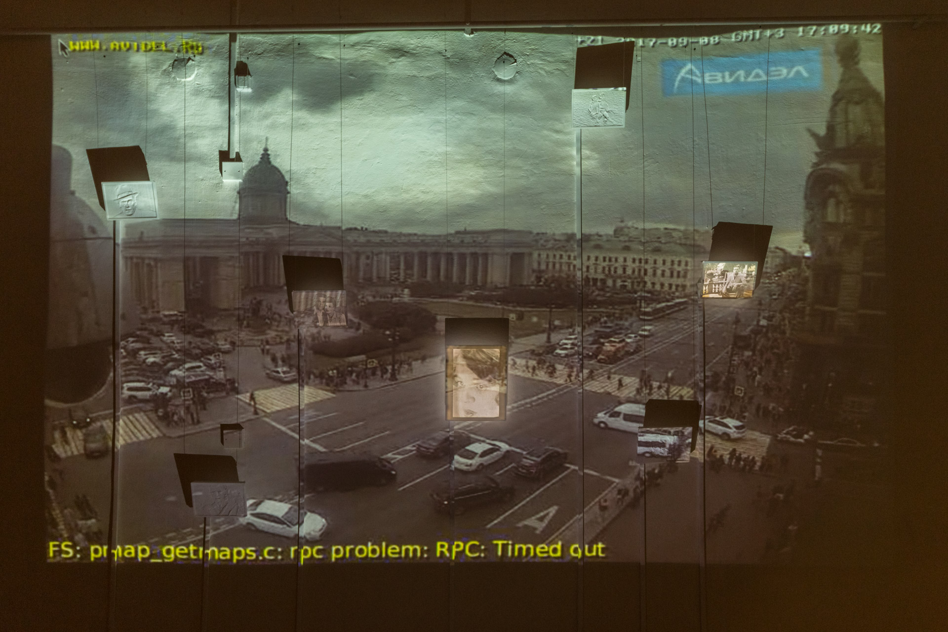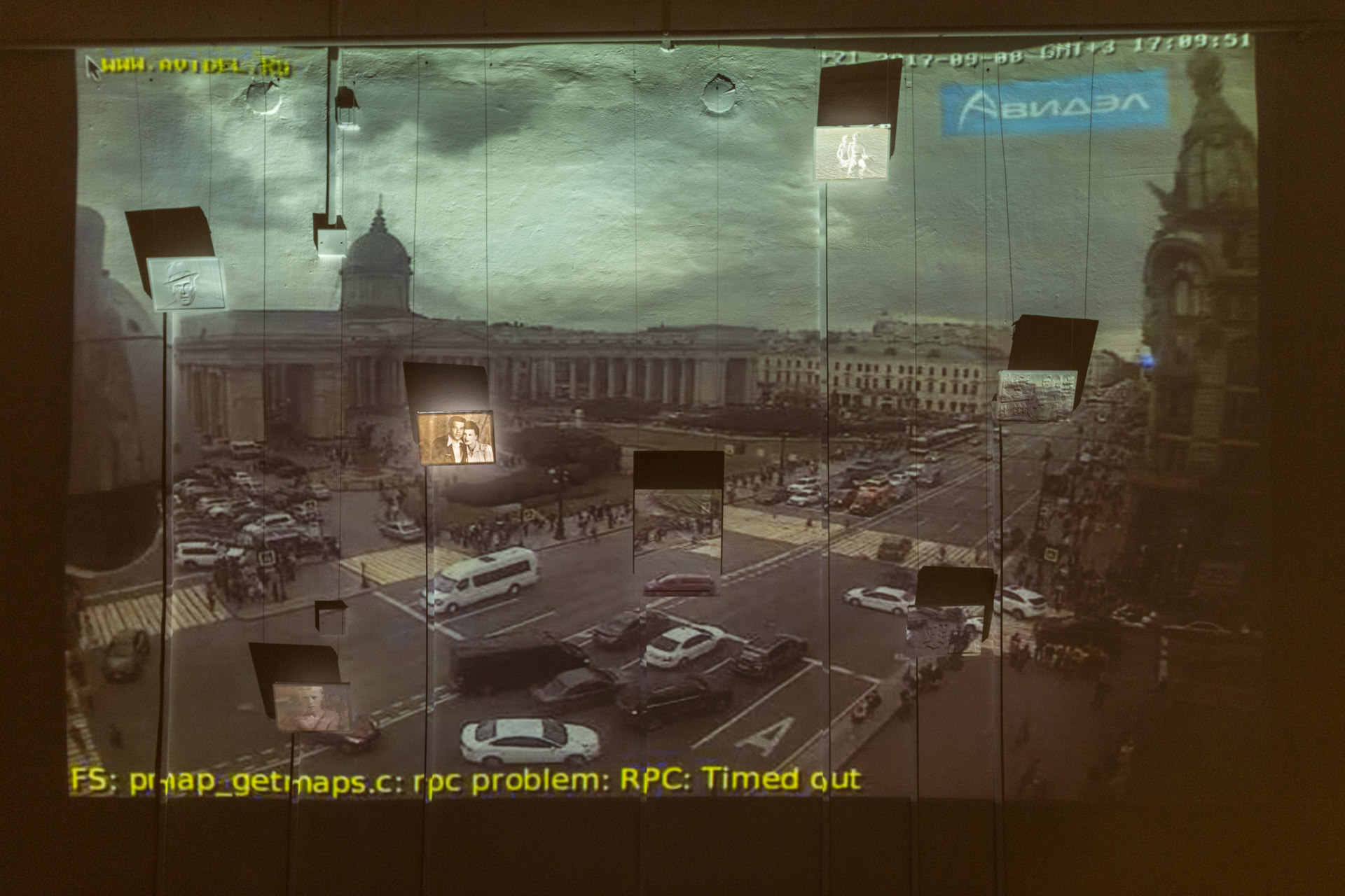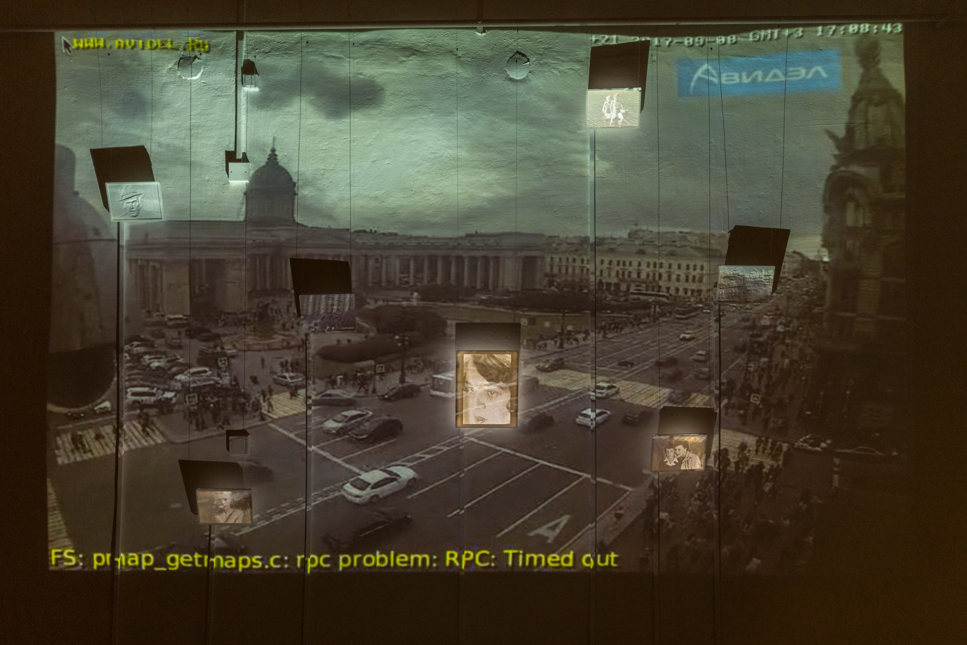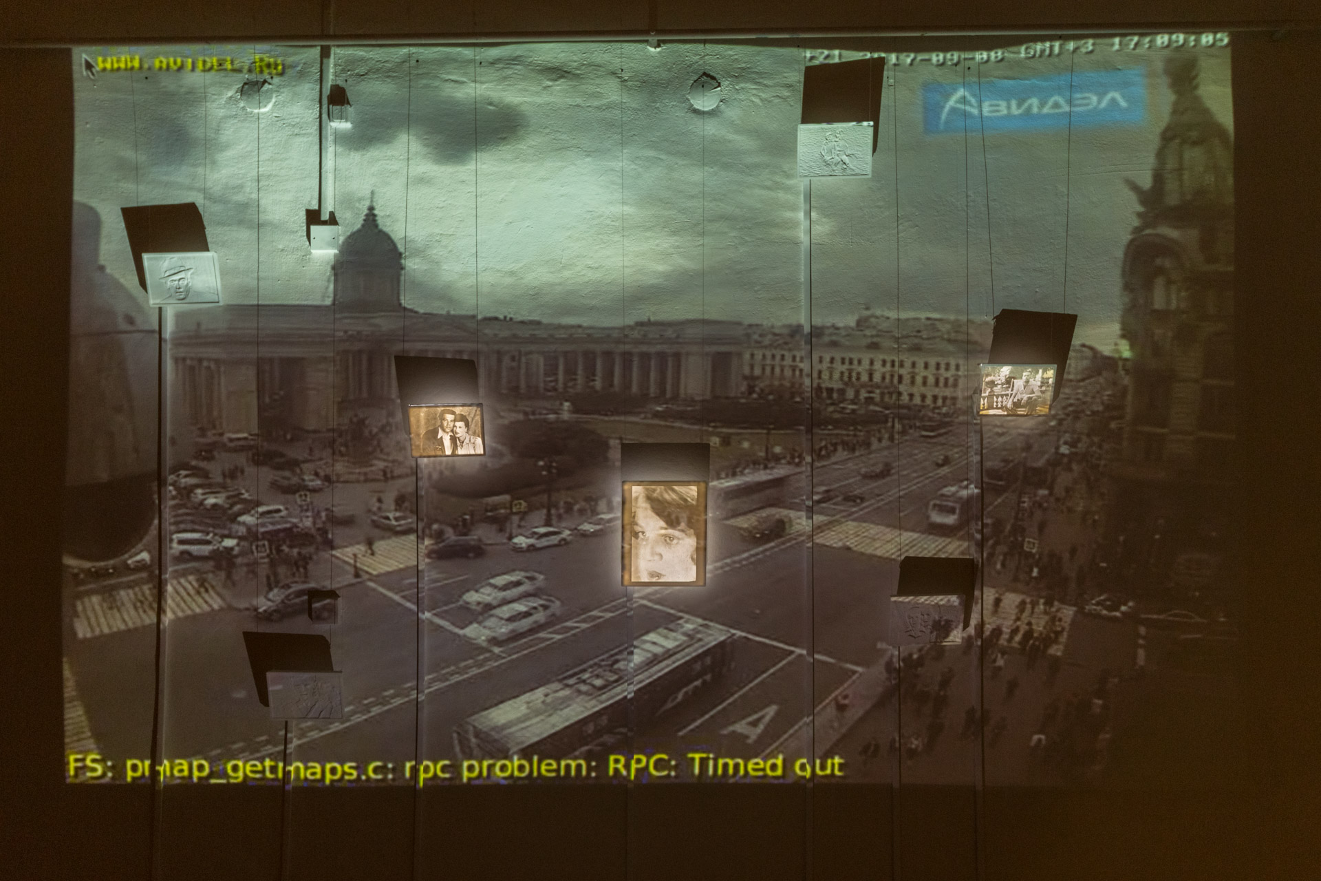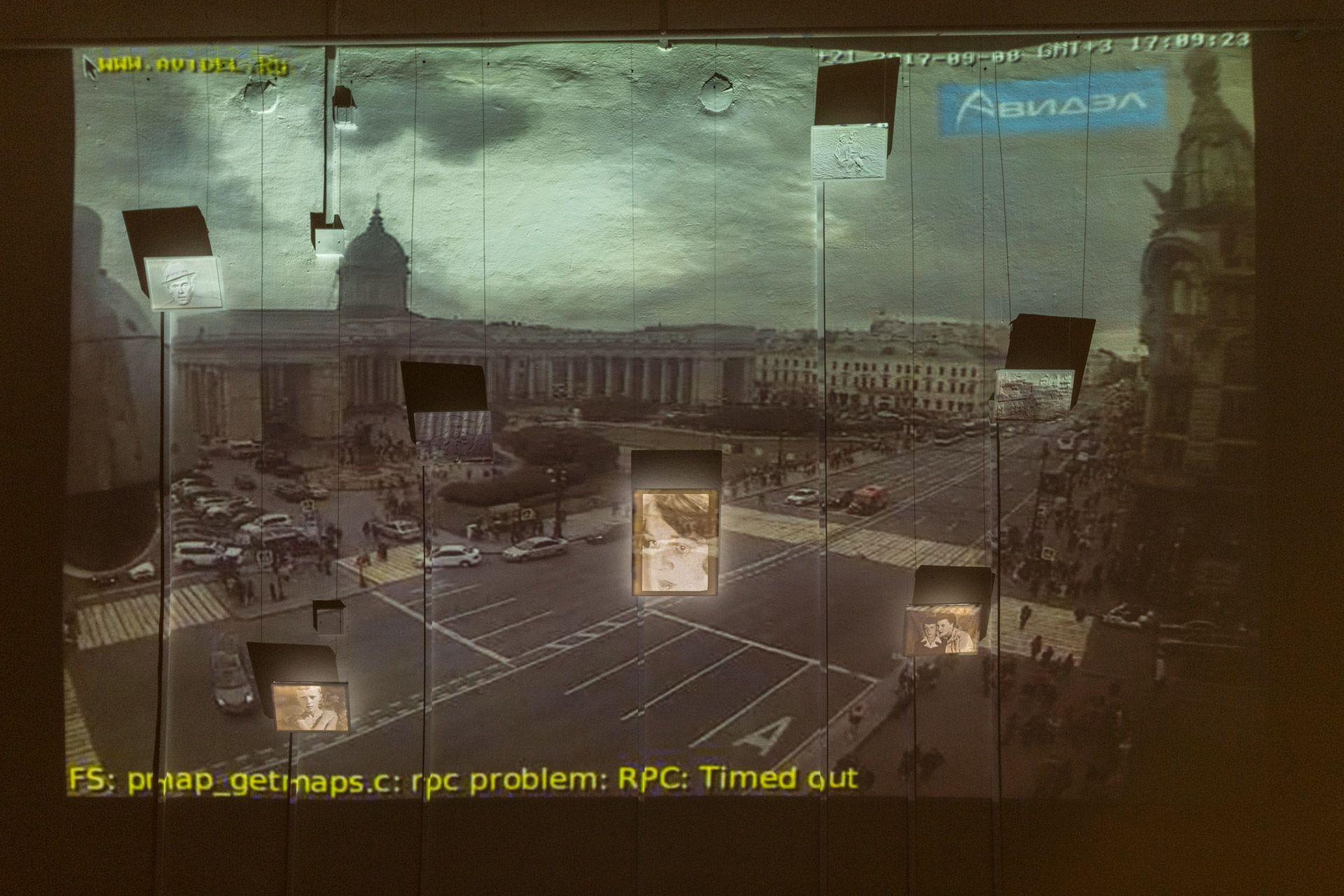 “Blind spot” is the name for the section of the road that a driver cannot see. In the installation of the same time, a direct broadcast from web cameras on Nevsky is combined with photographs from a family album. We look at the present-day city in real time, but for us, the understanding of what was experienced by over a million people who died and as many who were evacuated remains invisible. The only “threads of memory” are their words, written in their diaries, rarely remembered stories and a few photographs.