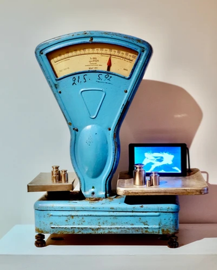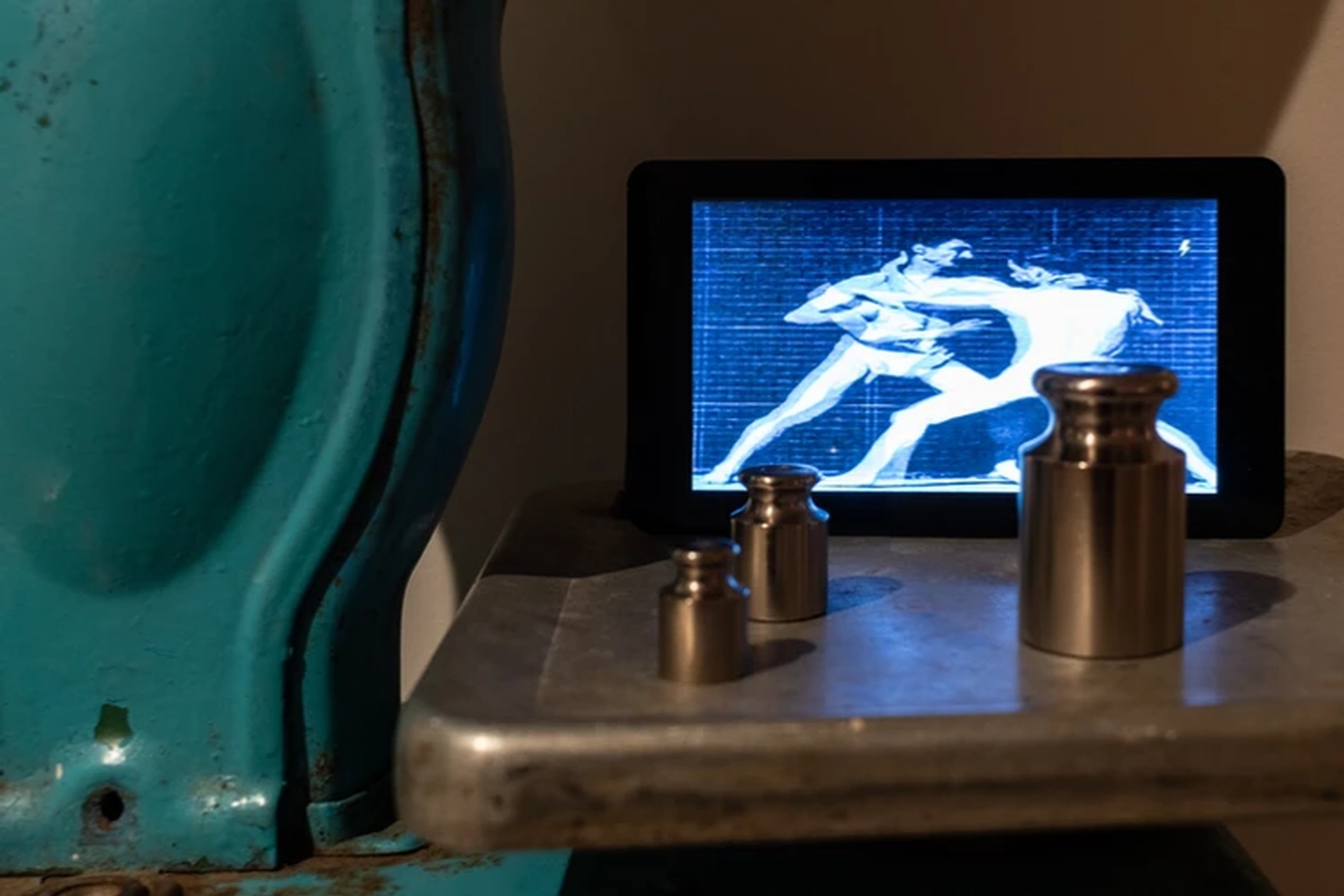 Antique weights, tv monitor, programming