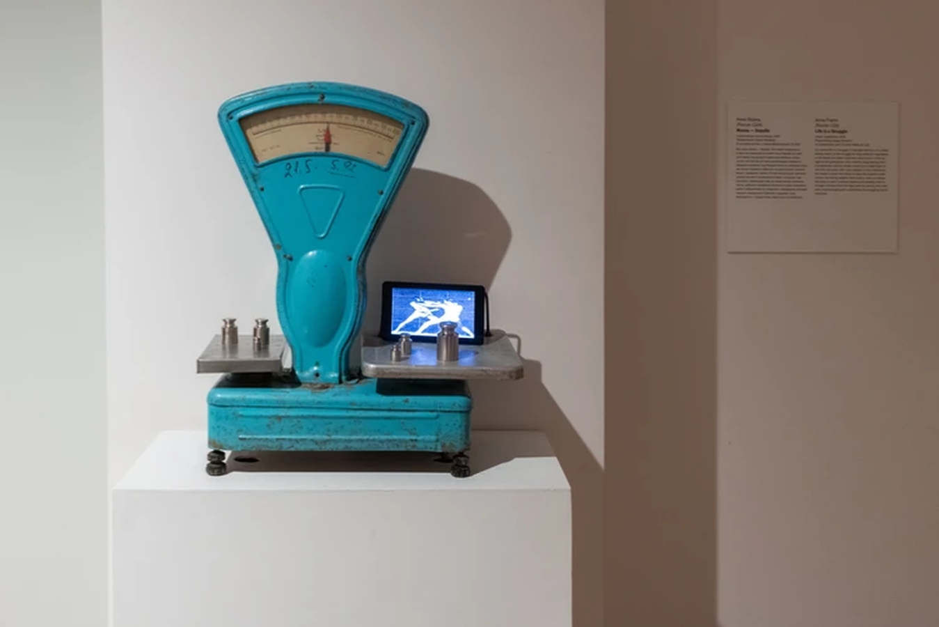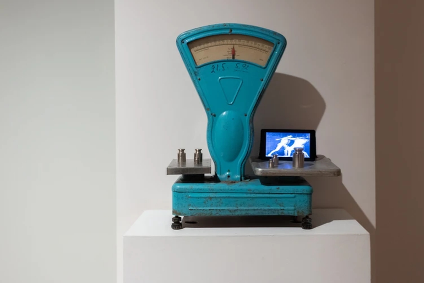 Our entire life is struggle. It could take form of a simple fight on the boxing arena or be the struggle for daily bread (or vegetable) in the Soviet times when, after a long standing in line at a greengrocer, accompanied by cheerful songs from а loudspeaker, they always strived to short-weight you on the rinky-dink dirty scales with rusty weight pieces. In this installation, a viewer is given an opportunity to take the situation under control – by moving weights from scale to scale, to change the song, to reach a desired balance and even, possibly, to come off victorious out of the fight with the vendor who, with each withheld gram, undermined the struggling Soviet consumer.